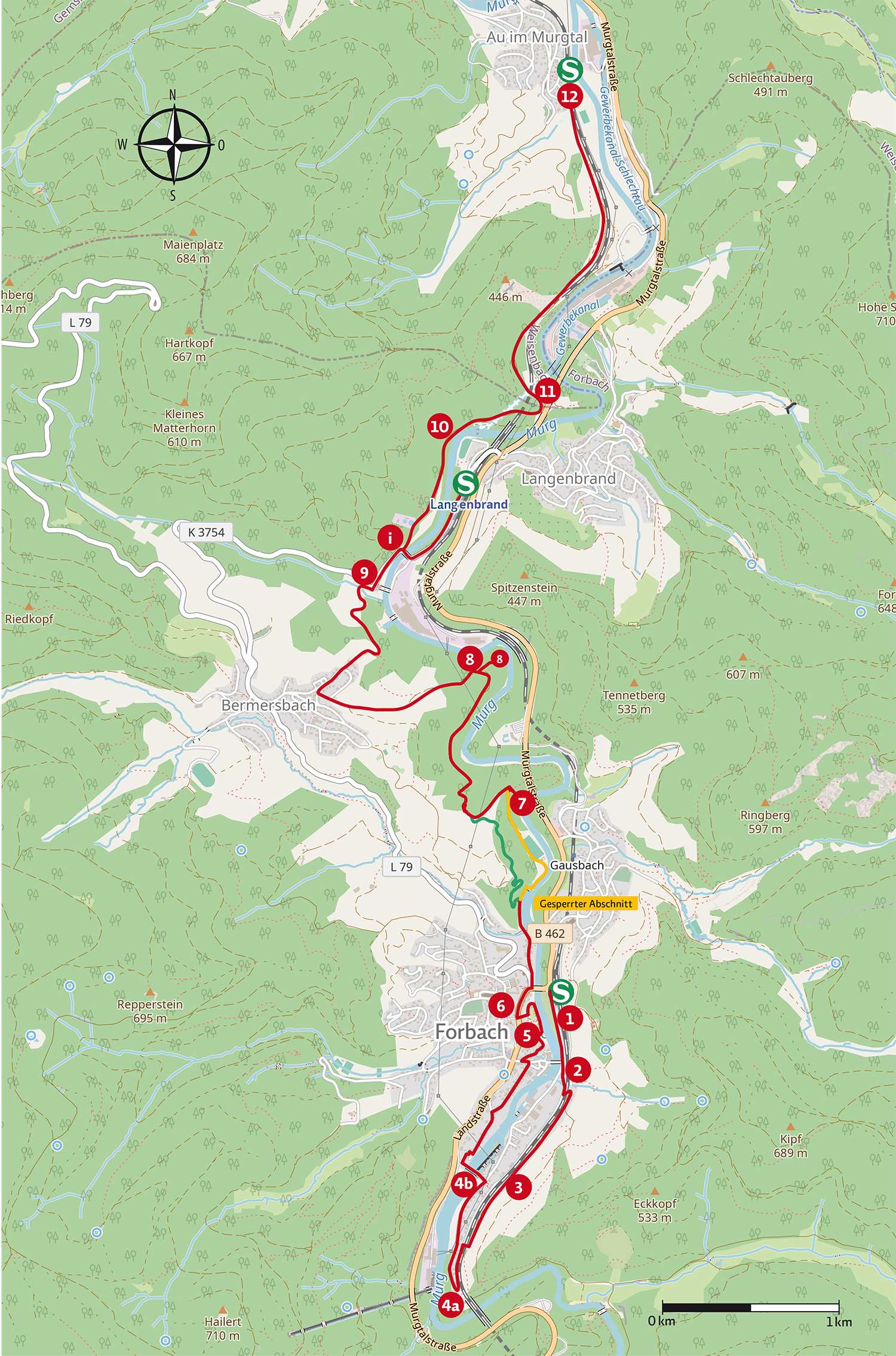 Der Abschnitt Wilde Murg bietet 3 Strecken von leicht bis mittelschwer.